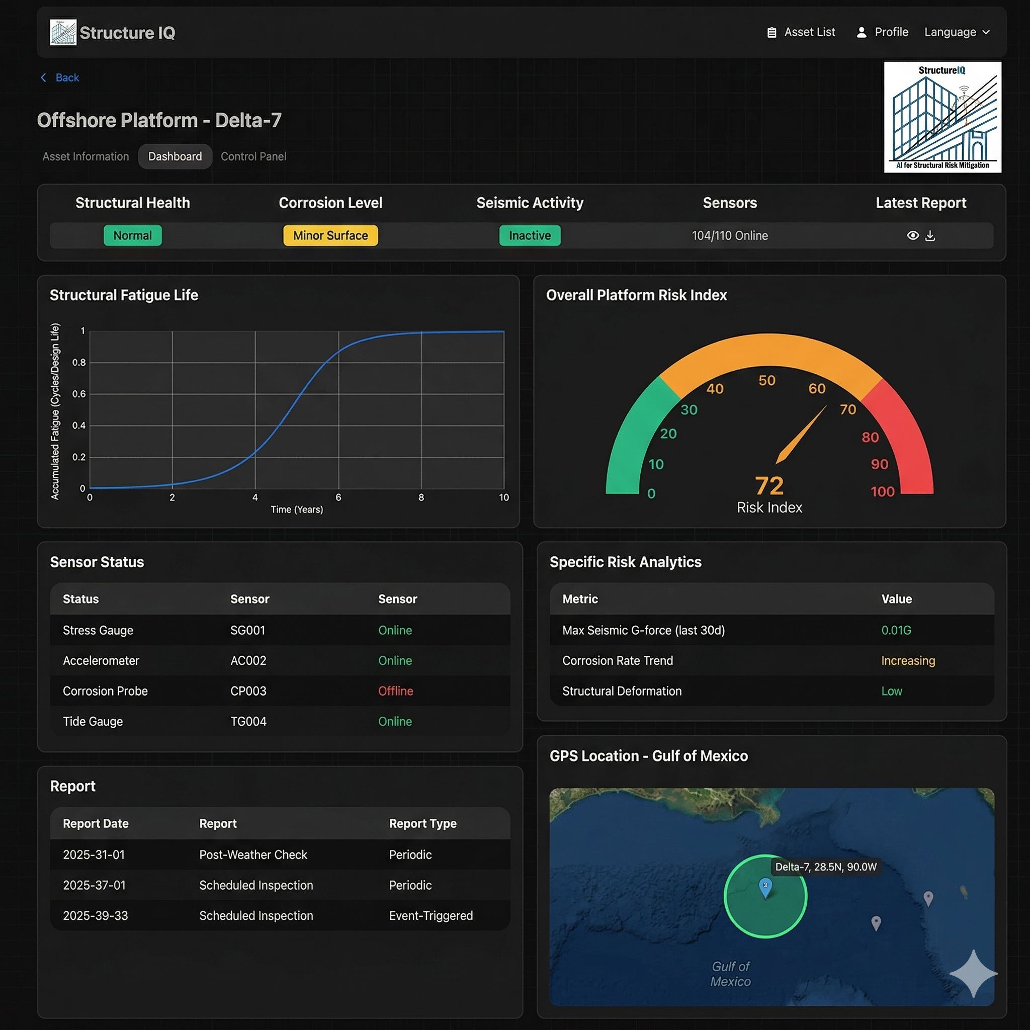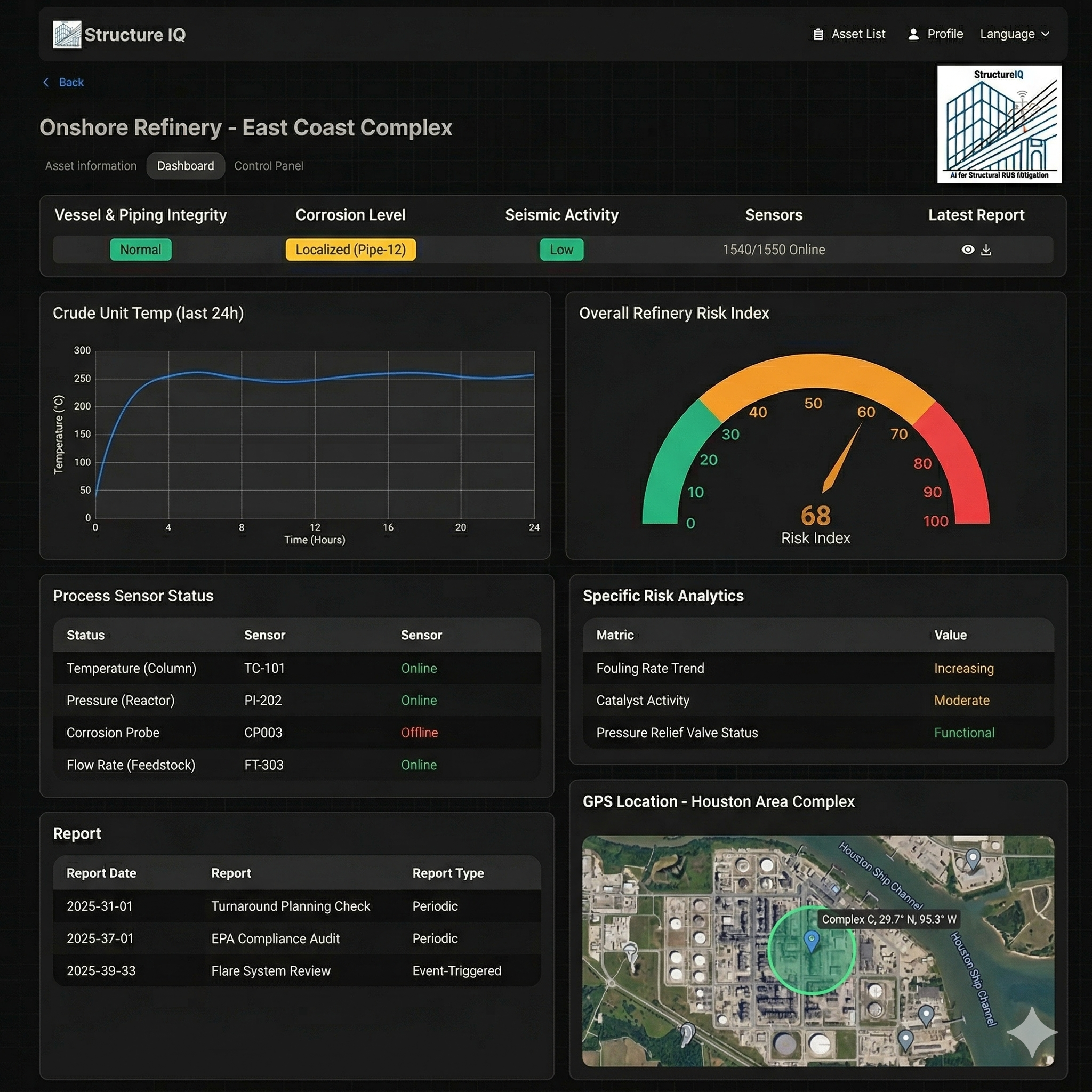 StructureIQ measures the structural health of onshore petroleum refinery structures, pipelines, and LNG terminals, measuring impact, degradation, and seismic events.