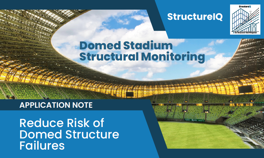 StructureIQ offers a wireless Structural Health Monitoring (SHM) system specifically designed to mitigate the “silent threats” facing large-span domed stadiums, such as wind uplift, heavy rigging loads, and environmental stress. By using a high-density array of tri-axial accelerometers and displacement sensors, the platform detects early warning signs, such as deflection anomalies and connection fatigue, that visual inspections often miss. This real-time data enables facility managers to transition from reactive repairs to predictive maintenance, ensuring attendee safety and extending the venue’s structural lifespan.